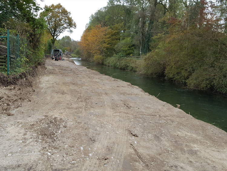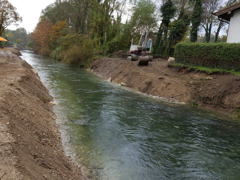 Parallel zur Deicherhöhung ist ferner die Mündung des Mühlbachs ca. 250 m nach unterstrom zu verlegen. Die neue Trasse verläuft hinter dem Mangfalldeich und soll zwischen dem Anschluss an den Bestand und der neuen Mündung ökologisch gestaltet werden.